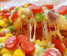 5. 预热烤箱至200℃,将披萨放入烤箱烤制15-20分钟,直到芝士融化,饼底金黄酥脆。